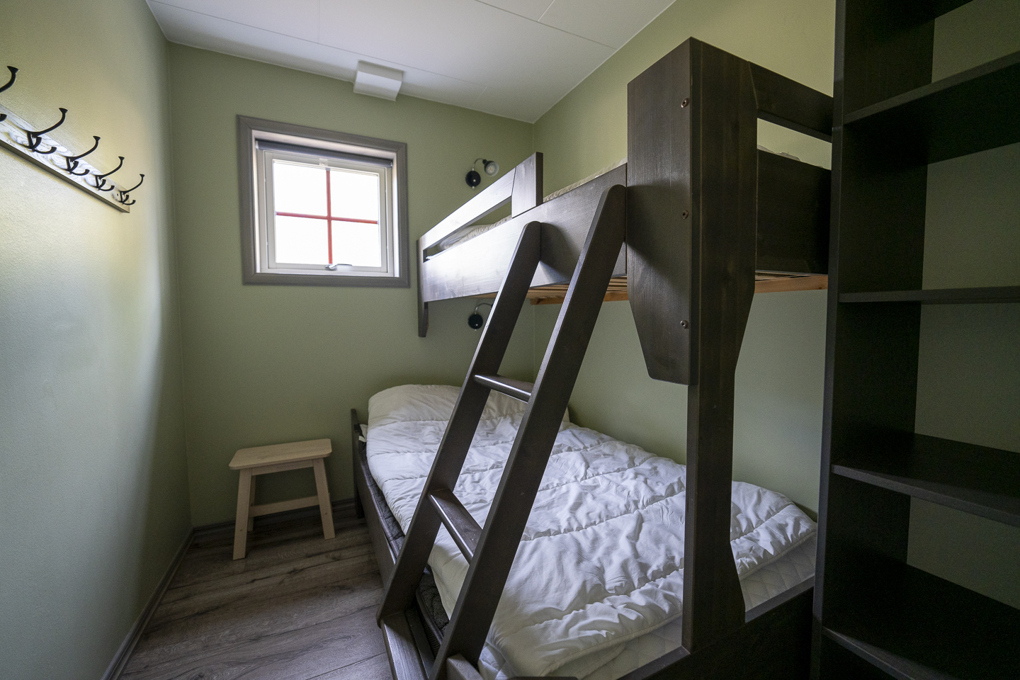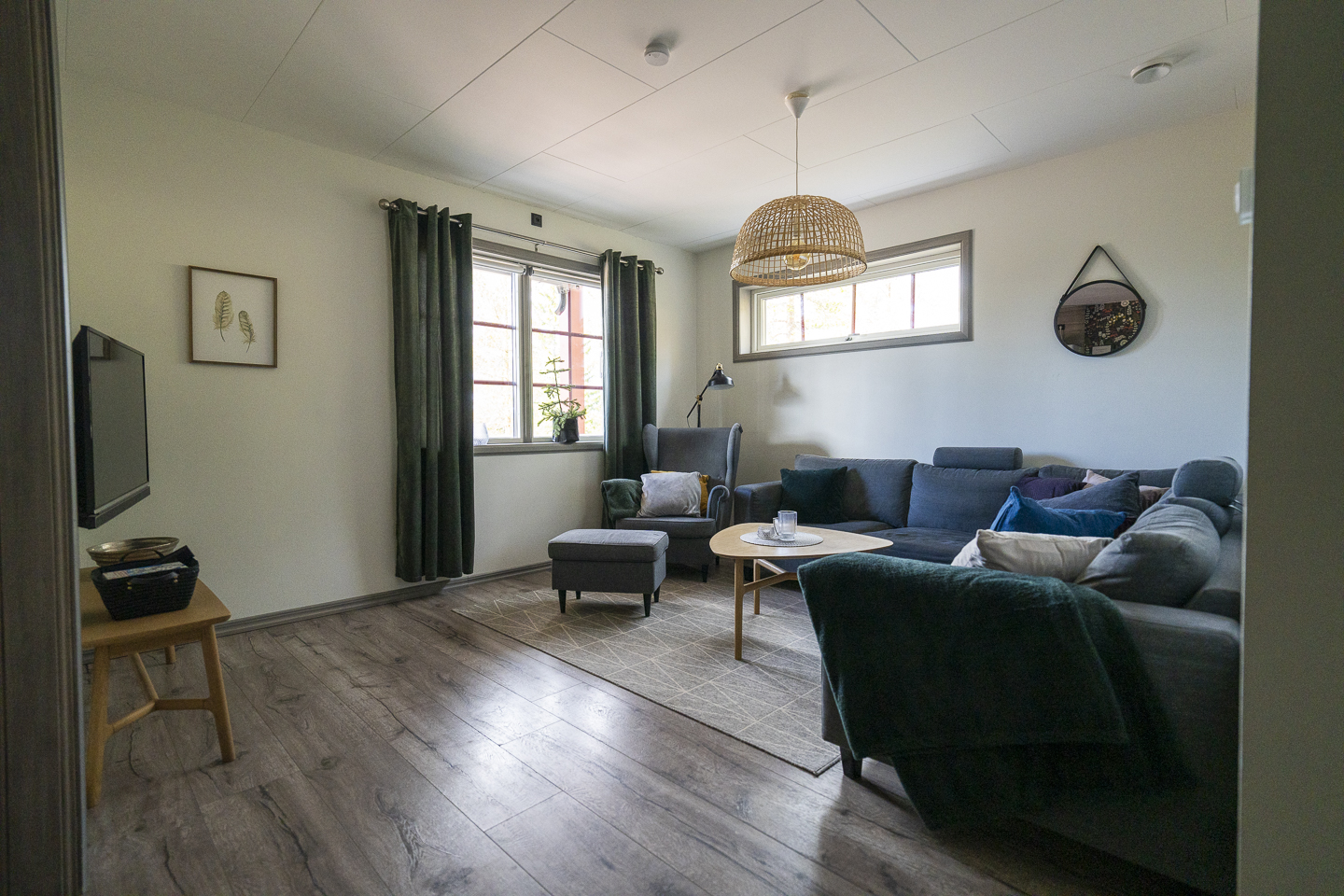 Köket är välutrustat för semesterens alla måltider 🍽️ och vardagsrummet har matplats, sittgrupp och TV. Badrum med dusch, torkskåp och motorvärmaruttag finns.