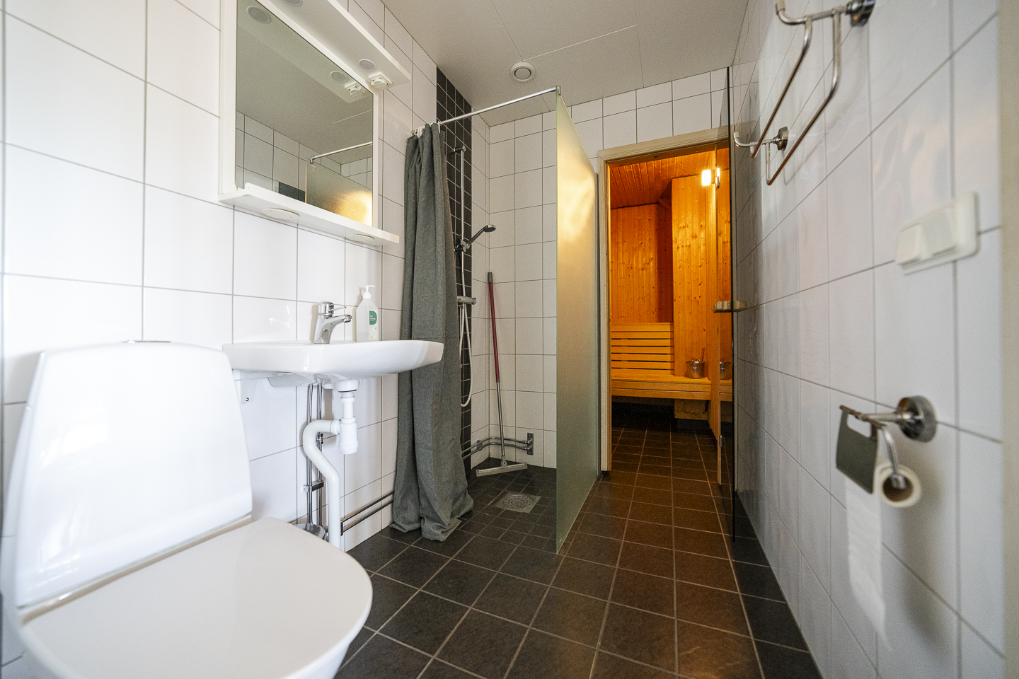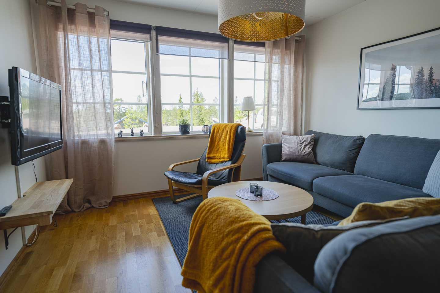 Köket är fullt utrustat för semestermiddagar och frukostmys och storstugan har matplats, sittgrupp och TV – redo för kvällshäng. Efter en dag i backen eller spåret väntar en härlig bastu för extra fjällfeeling.