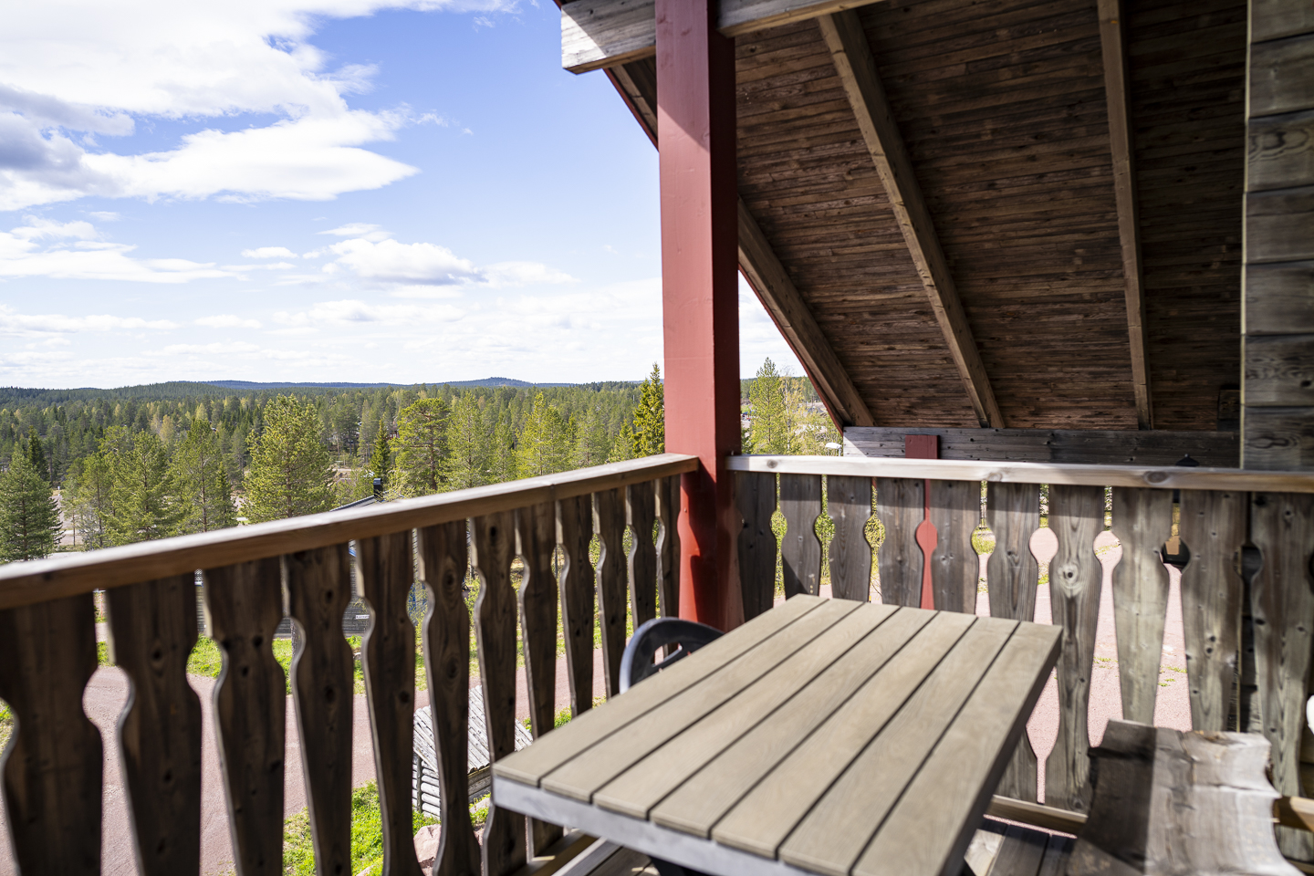 Köket är utrustat för semesterns alla måltider och balkongen bjuder på fin utsikt mot naturen. Sittgrupp och TV för kvällshäng.