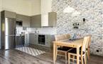 Kök med allt som behövs för semesterns måltider, soffgrupp, matplats och TV. Badrum med dusch, torkskåp och motorvärmaruttag.